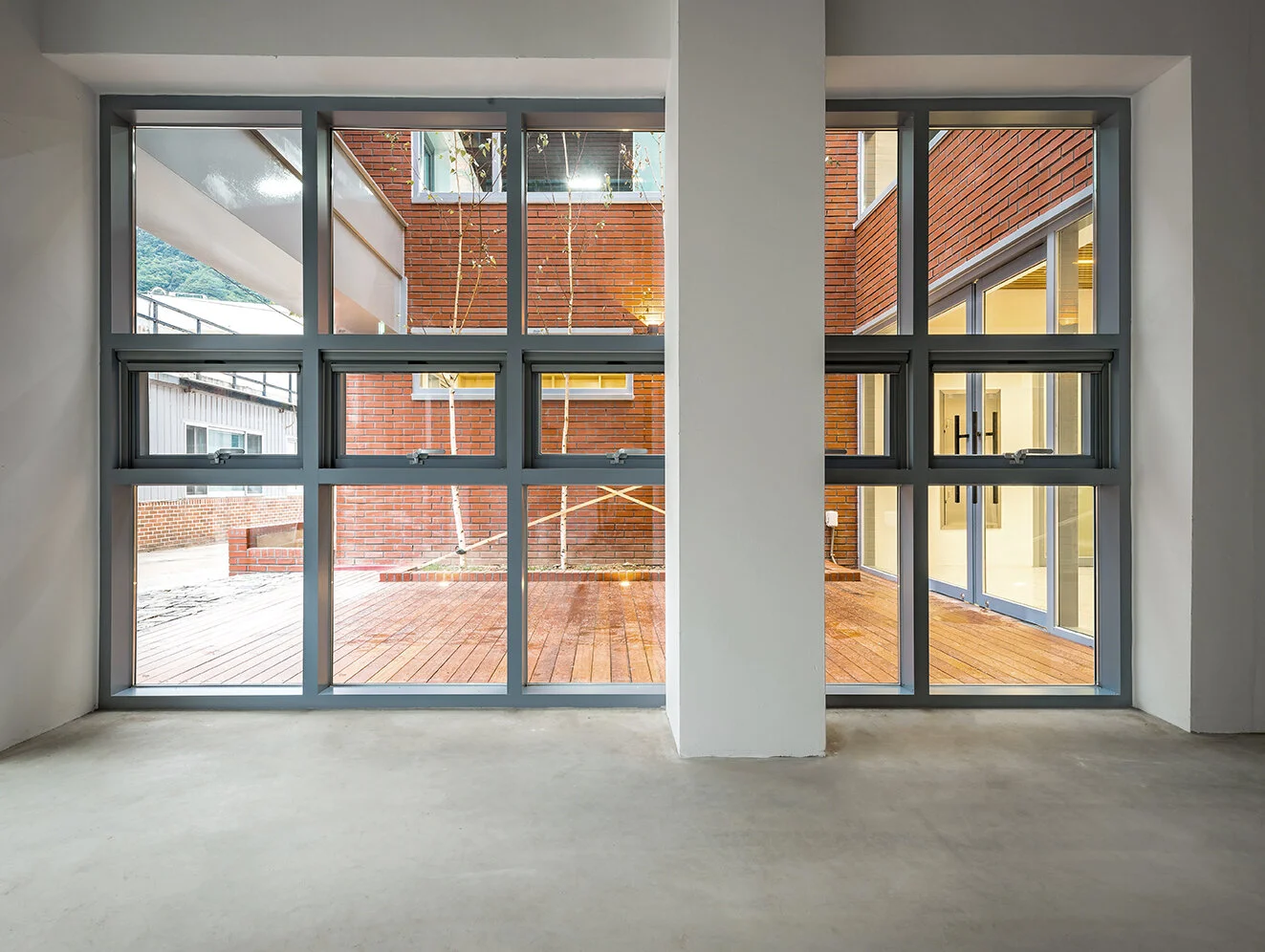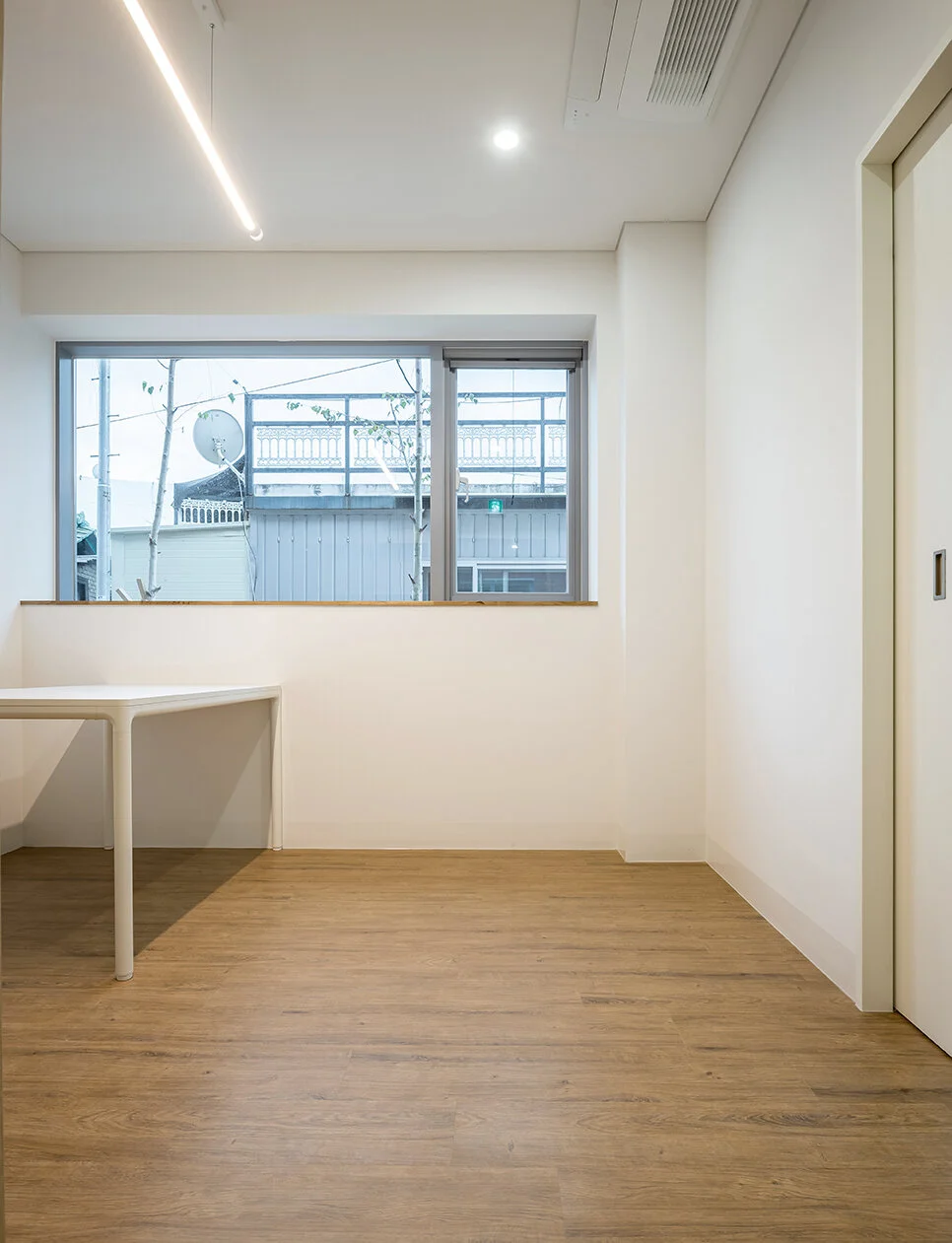 지역 상권 중심가에 위치한 JM CLINIC은 건축주가 운영하는 개인의원을 포함해 총 4개의 근린생활시설로 계획된 상가건물이다. 임대건물 특성상 공간의 쾌적함 보다는 수익을 우선시하는 경우가 많은데 대지가 가진 여러제약으로 인해 만들어진 이 건물의 형태는 모든 임대공간이 중정을 끼고 마주보고 있어 건물 내부 이용자들의 모습에 따라 변하는 다양한 경관을 연출하는 동시에 자연 채광및 환기가 유리하다. 건물의 정면이 되는 남측면은 벽돌을 투시형으로 쌓아 주변 낙후된 모습을 거르고 빛은 받아들이는 역할을 한다. 건물 남쪽에 면하는 좁은 골목길을 따라 심은 자작나무는 건물의 주출입구로 연결되어 이용자의 유입을 돕는 동시에 블록과 블록을 연결해주는 보행자만을 위한 길이 된다.